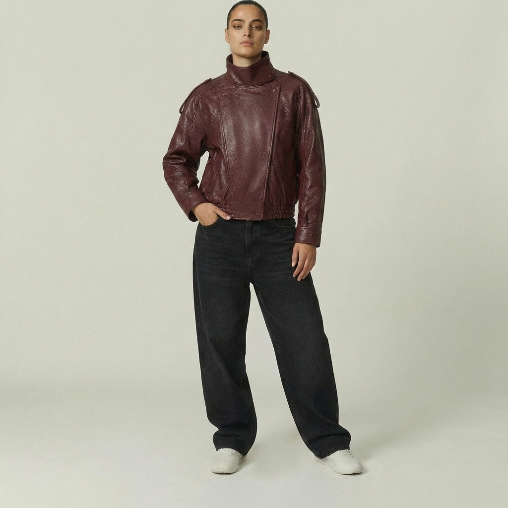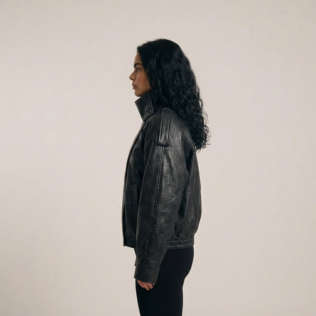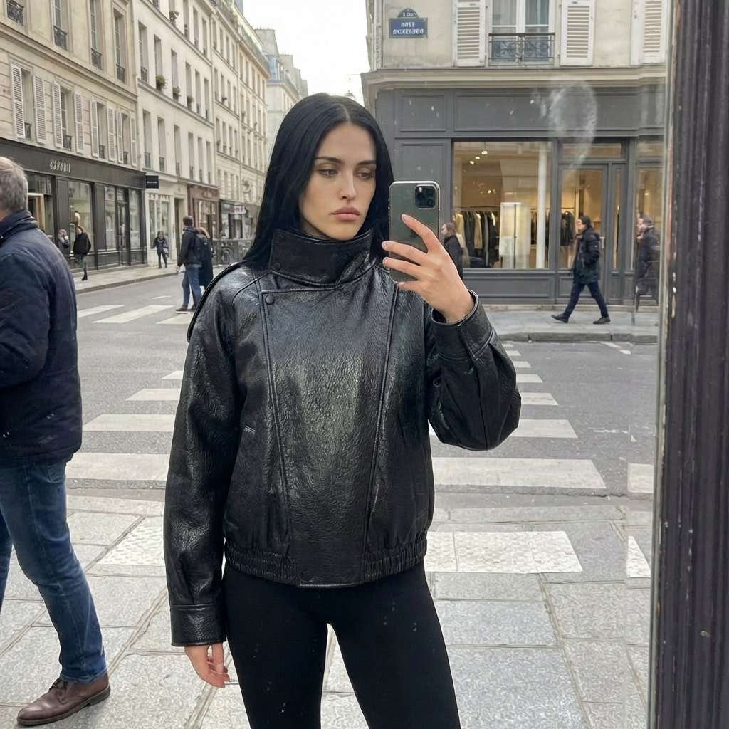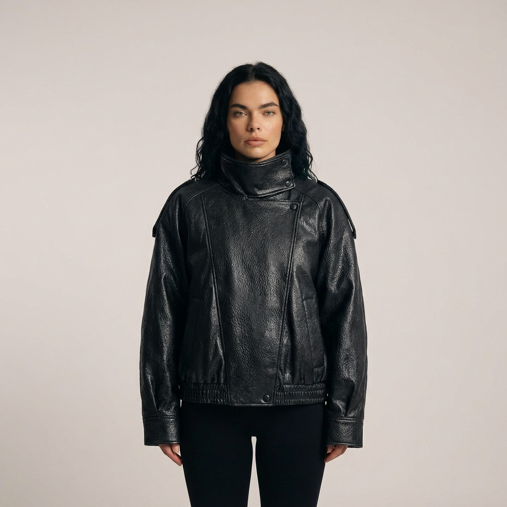 Bikerjakken och läderlooken är designad för att följa dig i vardagen med både karaktär och komfort. I oversize silhuet, i hög krav och den låt strukturerad finish ger och markant uttryck utan att kännas stiv, mens det mjuka material och den elastiska kan inte skapa balans i designad till praktisk, urban och alsidigt bruk.