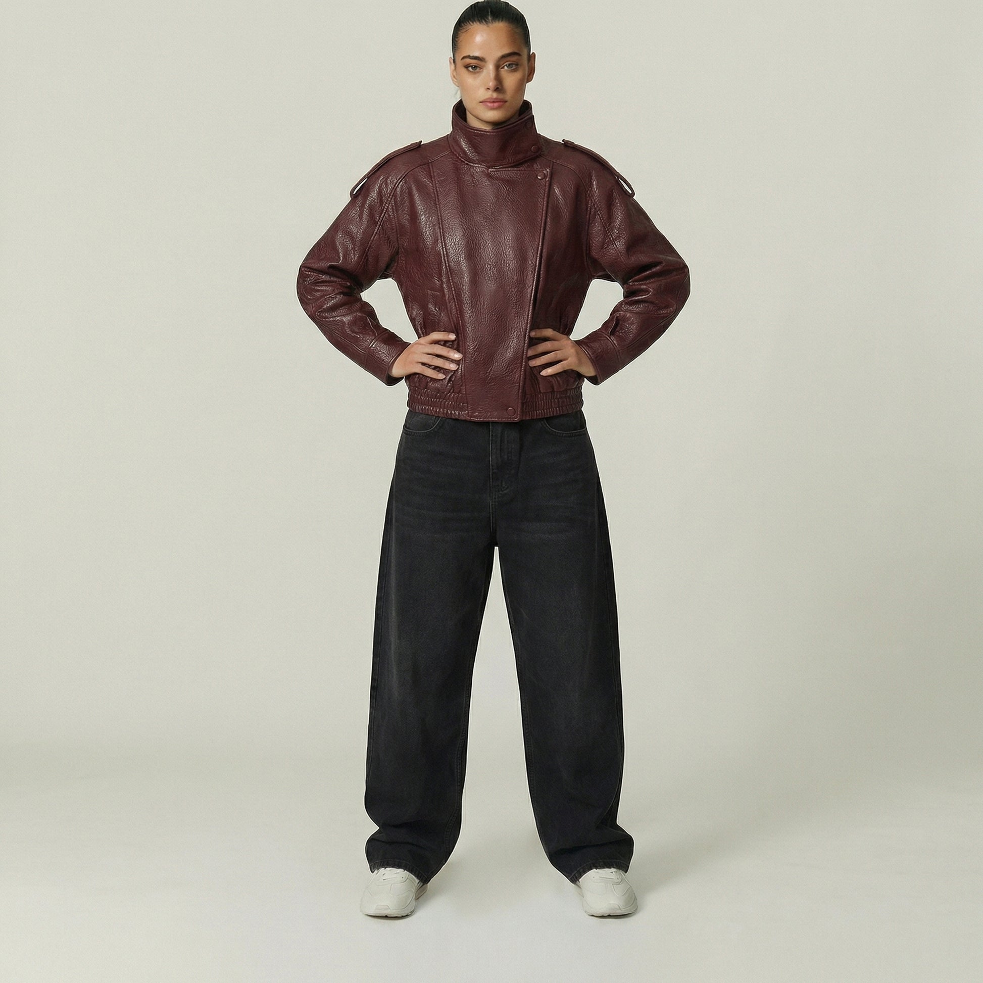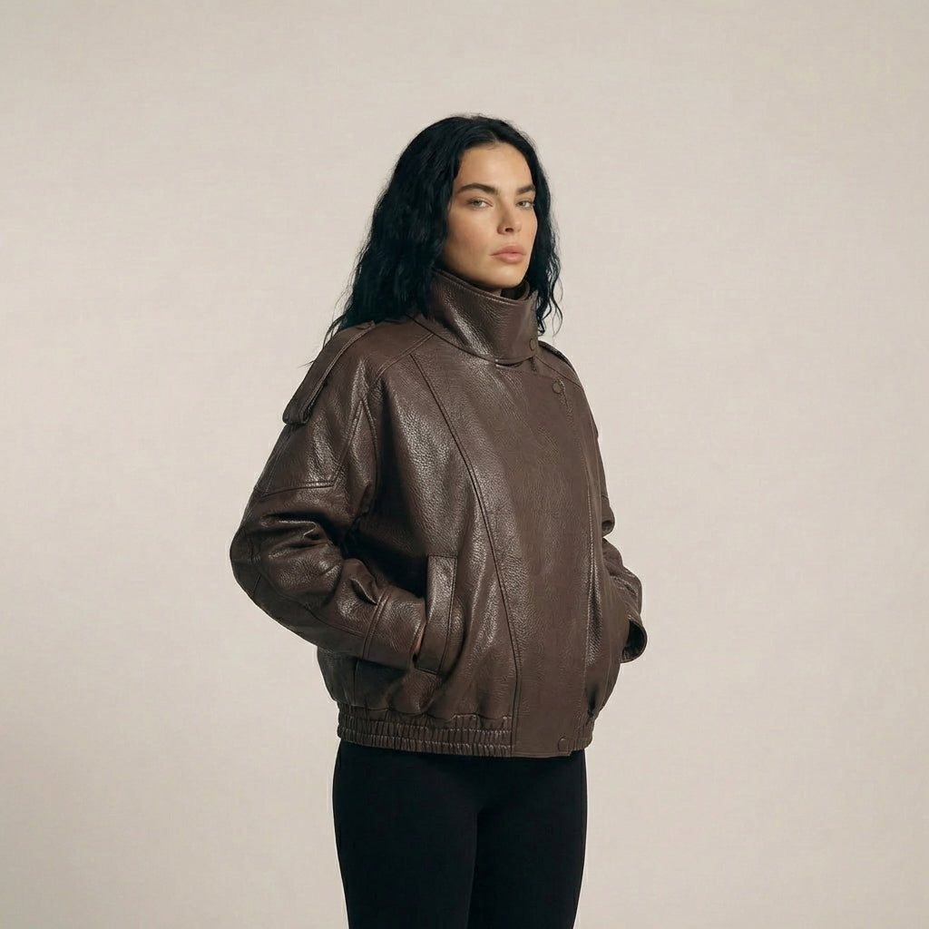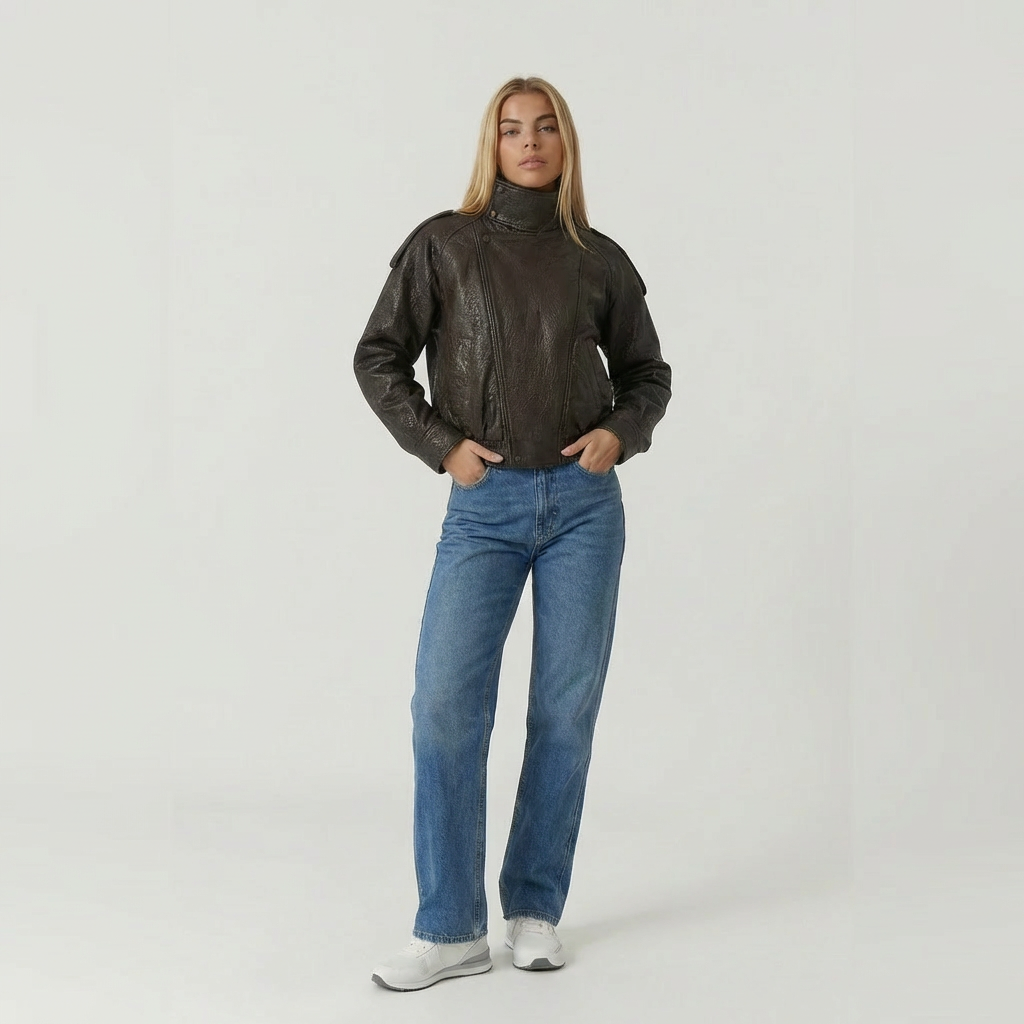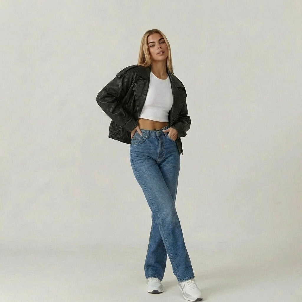 Bikerjakken och läderlooken är designad för att följa dig i vardagen med både karaktär och komfort. I oversize silhuet, i hög krav och den låt strukturerad finish ger och markant uttryck utan att kännas stiv, mens det mjuka material och den elastiska kan inte skapa balans i designad till praktisk, urban och alsidigt bruk.