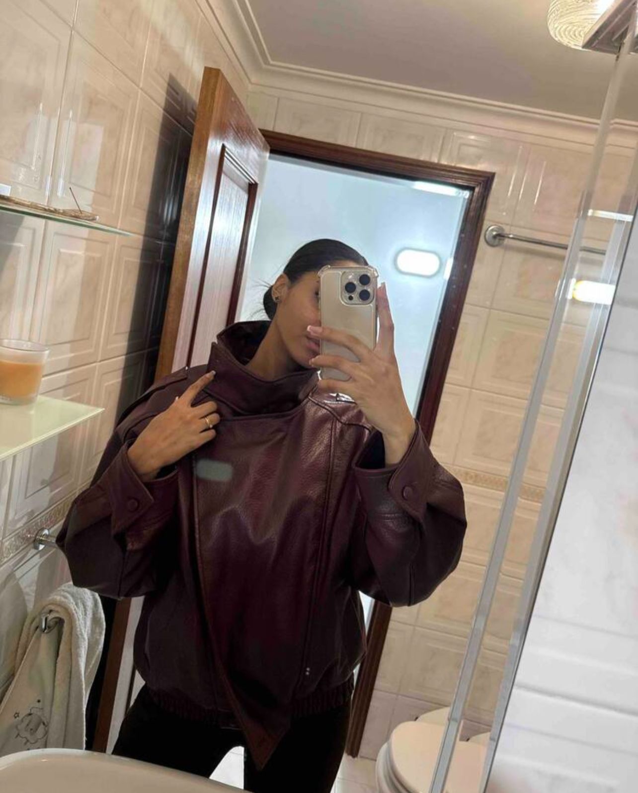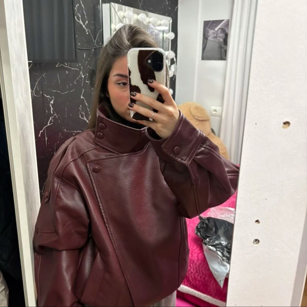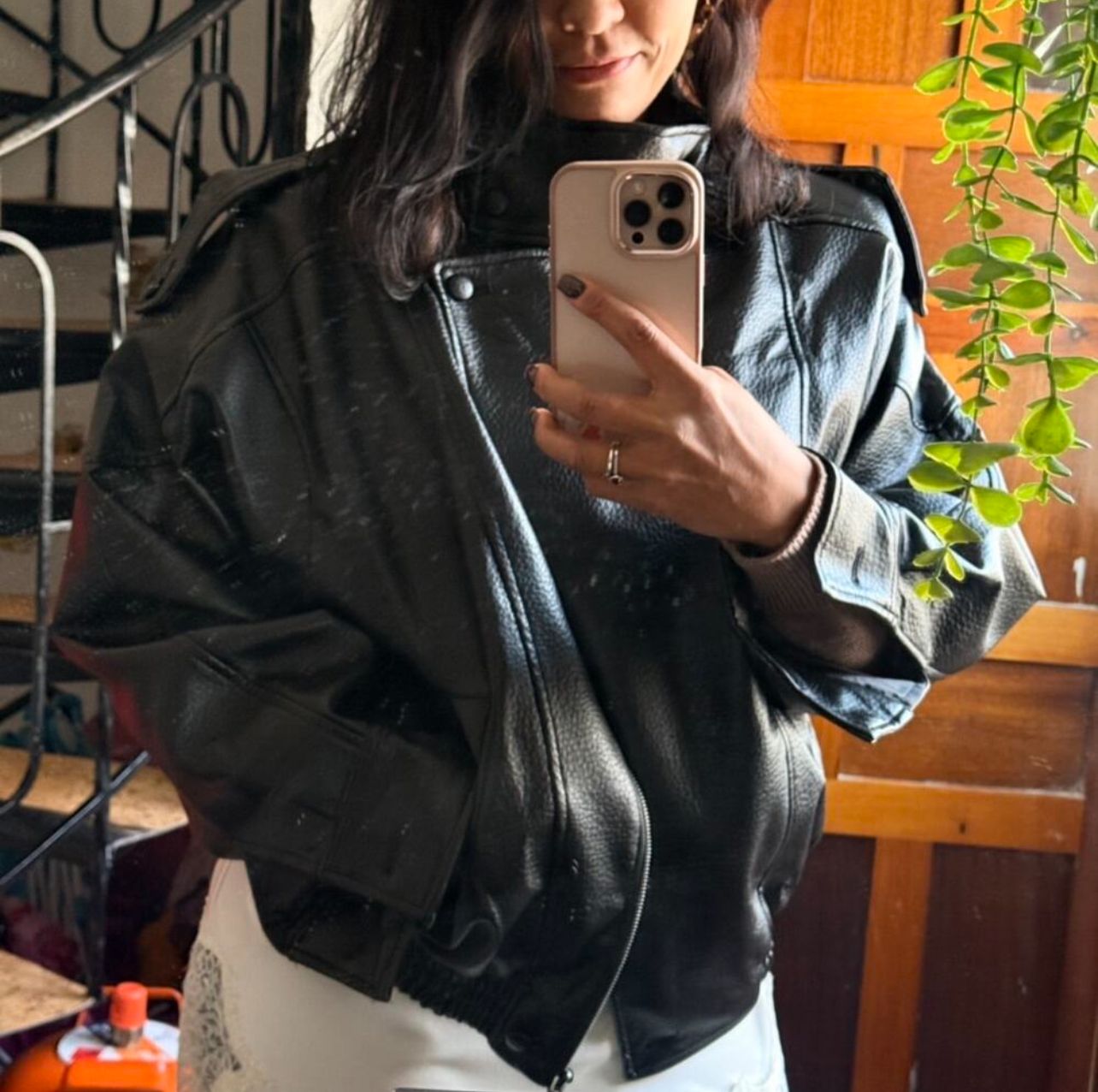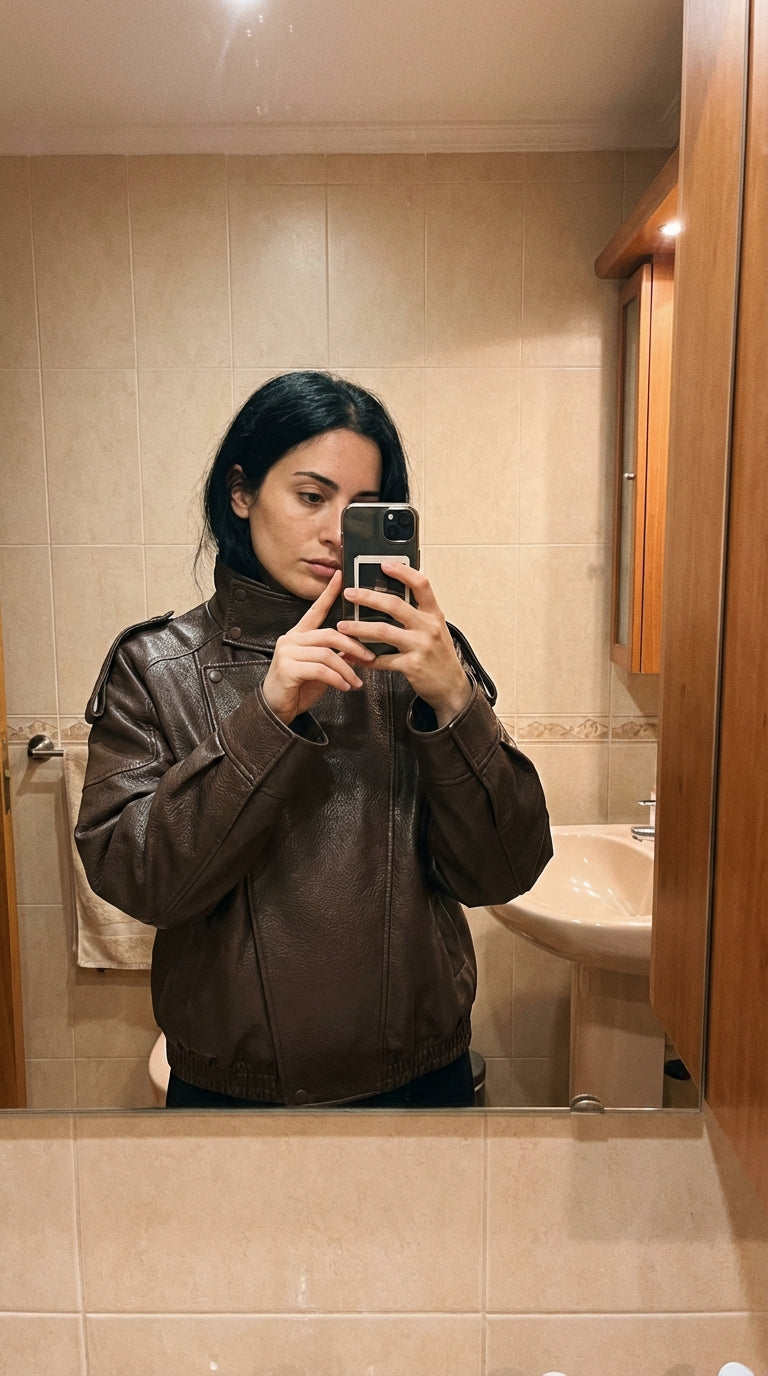 Bikerjakken och läderlooken är designad för att följa dig i vardagen med både karaktär och komfort. I oversize silhuet, i hög krav och den låt strukturerad finish ger och markant uttryck utan att kännas stiv, mens det mjuka material och den elastiska kan inte skapa balans i designad till praktisk, urban och alsidigt bruk.
